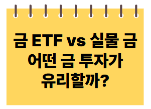 - 금 ETF: 개인이 직접 보관할 필요 없음. 자산운용사에서 관리.