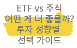 투자를 시작할 때 가장 먼저 마주하는 고민이 있습니다. 바로 ETF로 할까? 아니면 주식으로 직접 투자할까? 하는 질문입니다. 이 글에서는 ETF와 개별 주식의 차이를 명확하게 비교하고, 나에게 맞는 투자 방식을 선택하는 데 도움을 드립니다.